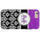 Girly, purple glitter image printed, black and white damask pattern you can personalise with your monogram Initial and your name. Damask Gallery©. A cute design for her.