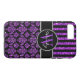 Girly Purple Glitter Black Damask Your Name Case-Mate iPhone Case