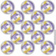 This set of 13 team colours volleyball stickers (each approximately 3 inches) features volleyballs with purple, gold and white panels (the purple and gold panels are blended with an artsy, girly floral pattern) - customise each sticker with a player's name & jersey number plus school or club name and mascot name - economically priced at a little more than $1 per 3" sticker - by katz_d_zynes