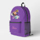 The perfect gift for your little horse girl! Purple backpack with pink lettering and a multi coloured running horse. This cute backpack is easily personalised with her name in pink script on the front pocket and "This Backpack Belongs To A Horse Crazy Girl" on top but you are welcome to change it to your favourite saying.