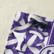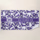 This volleyballs pattern beach towel features a random pattern of varied size purple and white stylised volleyballs turned every which way on a customisable white background - personalise with her name and jersey number - by katz_d_zynes