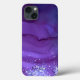 Add a bit of glam and glitz to your phone with faux glitter and your name in an elegant script on a purple inky abstract.