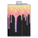 Girly Rainbow Glitter Drips Sparkle Monogram Hip Flask