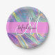Girly Rainbow Holographic Iridescent Monogram Name Paper Plate