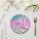 Girly Rainbow Holographic Iridescent Monogram Name Paper Plate