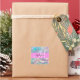 Girly rainbow holographic iridescent monogram name and initial square sticker. Your custom name and monogram are written in an elegant hand lettered script with a pink background. A perfect birthday or Christmas gift!