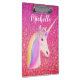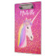 Girly Rainbow Unicorn Pink Glitter Personalized Clipboard