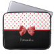 Girly Red and Black Polka Dot Hearts Bow With Name Laptop Sleeve