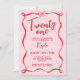 Celebrate a milestone in style with this trendy red and pink "coquette" style 21st birthday invitation! Featuring a chic wavy ribbon frame and an elegant bow, this preppy design is perfect for a modern "Twenty One" celebration. The sophisticated mix of large script calligraphy and clean typography creates a fashion-forward look that's perfect for a cocktail party, rooftop brunch, or an aesthetic dinner with friends. This bold, on-trend palette is designed for the birthday girl who loves a "Pinterest-perfect" aesthetic. Available as high-quality printed cards or as an instant download for easy digital sharing!