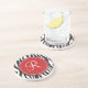 This coaster features a black & white zebra print background. On top is a red circle with a white border. Customise the letter inside the circle to personalise the product.