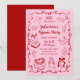 Girly Red Pink Hand Drawn Galentine's Pajama Party Invitation