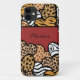 Girly Red Playful Animal Print Hearts Name Case-Mate iPhone Case