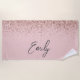 Girly Rose Gold Blush Pink Glitter Monogram Beach Towel