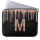 Girly Rose Gold Dripping Glitter Monogram Name Laptop Sleeve