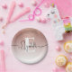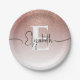 Girly Rose Gold Glitter Blush Monogram Script Name Paper Plate