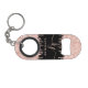 Girly, Elegant, Sylish, Light Rose Gold Glitter Drips 2 Monogram Script custom personalised name monogrammed keychain bottle opener on black. Featuring a modern luxury faux light pink rose gold glitter dripping frame, a large double (2) hand lettered monogram script font with swashes (in large size initials), and a serif type font name in light pink on black background. Easy to personalise it. Great feminine girly gift for girlfriend, mother, birthday, wedding, sweet 16 birthday party, bridal shower, and baby shower, business and for anyone who like pretty glamourous shiny things.