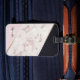 Elegant Girly Rose Gold Marble Abstract Blush Monogram design is the perfect way to keep track of your bags while you travel. This design features black, pink, and rose gold marble stripes separated by thin gold stripes. Personalise with your name, monogram, initial or text. You can change text colour and font style using the customise it further option. Faux glitter with a sparkle effect.