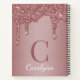 Girly Rose Gold Sparkle Glitter Drips Monogram Notebook with fashion faux blush pink/rose gold glitter drips on a chic background with your custom monogram and name. Designed by Cedar and String. To personalise further, please click the "customise further" link and use the design tool to modify the design. If you need assistance or matching items, please contact us.