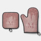 Girly Rose Gold Sparkle Glitter Drips Monogram Oven Mitt & Pot Holder Set