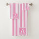 Girly Rose Pink Cabana Stripes Monogrammed Initial Bath Towel Set