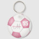 This girly soccer keychain features a classic soccer ball with rose pink and white panels - the rose pink panels have a digitally created texture - customize the player's name, monogram and jersey number - by katz_d_zynes