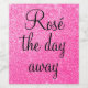 Stylish, trendy, girly "Rosé the day away" wine label with a hot pink glitter sparkle background and black writing.