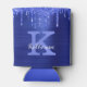 Girly Sapphire Blue Glitter Drips Monogram Name Can Cooler