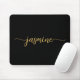 Girly Black And Gold Simple Minimalist Monogram Name Signature Script Custom Personalised mousepad. These design featuring your first name in a pretty hand lettered style swash tail font typography on black and gold. These are easy to customise. Great stylish feminine gift for birthday, bridal shower, mother’s day, sweet 16 birthday and and It’s for the girl who loves unique minimal stylish things.