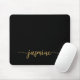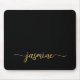 Girly Black And Gold Simple Minimalist Monogram Name Signature Script Custom Personalised mousepad. These design featuring your first name in a pretty hand lettered style swash tail font typography on black and gold. These are easy to customise. Great stylish feminine gift for birthday, bridal shower, mother’s day, sweet 16 birthday and and It’s for the girl who loves unique minimal stylish things.