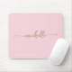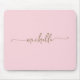 Girly Blush Pink Simple Minimalist Gold Monogram Name Signature Script Custom Personalised mousepad. These design featuring your first name in a pretty hand lettered style swash tail font typography script in gold colour on light baby pink or blush pink colour background. These are easy to customise. Great stylish feminine gift for birthday, mother’s day,  bridal shower, sweet 16 birthday and and It’s for the girl who loves unique minimal stylish things.