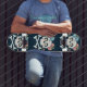 This skateboard features a playful girly skull and crossbones graphic decorated with vibrant bows and colorful flowers, making it a fun and stylish choice for young ladies who want to express their unique personality while riding. The eye-catching design adds a touch of flair and individuality to any skate session.