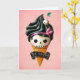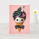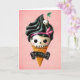 Not exactly regular ice cream cone. The scoop is skull of a girl with long beautiful black hair tied with bow and with attached cherry. Oh, wait it's not cherry - it is on more skull. Sweet and scary Halloween design.