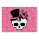 This girly skull is wearing a cute top hat with pink bows and flowers.