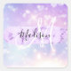 Girly and cute square sticker with a colourful pink, purple, lilac and blue unicorn rainbow hearts sparkly background. Your custom name and monogram are written in an elegant hand lettered script with a lilac purple unicorn paint brush strokes stripe background. A perfect birthday or Christmas gift!