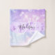 Girly and cute wash cloth with a colourful pink, purple, lilac and blue unicorn rainbow hearts sparkly background. Your custom name and monogram are written in an elegant hand lettered script with a lilac purple unicorn paint brush strokes stripe background. A perfect birthday or Christmas gift!
