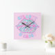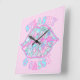 Girly Splashy & Sassy Pink Turquoise Mermaid Kiss Square Wall Clock