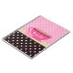 Girly Teacup Pink and Brown Polka Dot Bow and Name Notebook