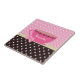 A girly pink and brown polka dot pattern tile with a cute pink teacup trimmed with a trendy heart border, and a pretty pink ribbon tied in a bow on the handle. Personalise by adding your name. Perfect present for the girly girl who would love to bring a fun tea party wherever she goes!