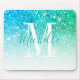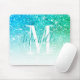 Girly Teal Aqua Blue Glitter Sparkle Monogram Name Mouse Pad