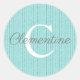 Girly Teal Aqua Blue Glitter Stripes Monogram Classic Round Sticker