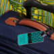 Girly and Modern Teal and Black Damask Luggage Tags. Personalise with your own name and address.