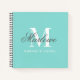 Stylish Monogram Bright Teal Blue Grey Script Name square notebook for your new home office, administrative and professional work, back to school, artwork sketches, recipe notes etc. Choose from a variety of insert types including wide rule, college rule, and blank for sketching.