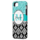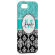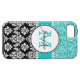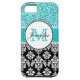 Girly, Teal, Glitter Black Damask Personalised Case-Mate iPhone Case