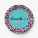 Girly Teal/Pink Leopard Print Sweet 16 Paper Plate