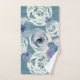 Pretty teal bath set towels in a watercolor flower design.