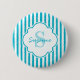 Girly Turquoise Painted Stripes Monogram and Name 6 Cm Round Badge