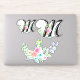 Girly pink, blush and blue watercolor floral spray with black script font monogram/initial. Letter M.