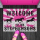 Your wife will love this funny doormat by JessicaAmber. Features a welcome greeting in a classic Western font. Also features black silhouettes of horses, casting pink shadows from the hot pink rising sun. You can customise the text as needed to show your family's last name, as well as replacing the background photo. ⭐ For more teen gifts, visit my store Zazzle.com/JessicaAmberArtist ⭐ For custom orders, contact me via Zazzle messaging