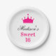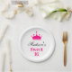 Girly White Hot Pink Sweet 16 Princess Crown Name Paper Plate