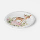 Girly Woodland Deer Pink Floral Forest Birthday Paper Plate